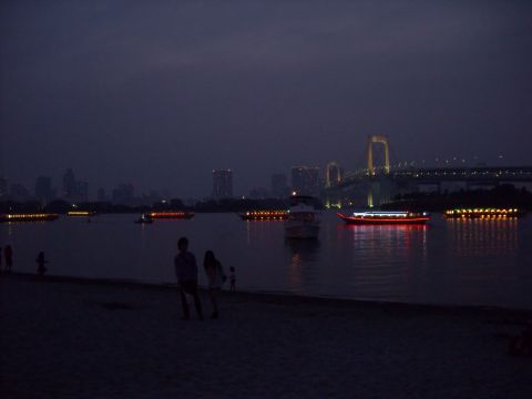 今回は夜景を目当てにリベンジであります 往路は手抜きっちゅーか船で・・・ んで 夕暮れまでお台場でヒマ潰して・・・ またプロムナードを渡ったのでありますですハイ |